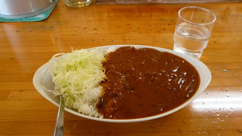 ちなみに大盛600円でござい。昼時だったのでほぼ満席、しかしカレーなのですぐに来る。ヤッタネ!