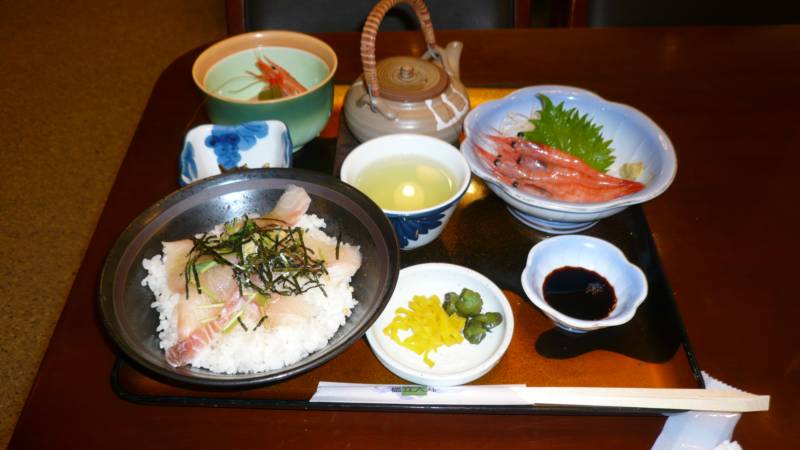 この朝飯食う前に既に4時間近く走ってます@通りの店・鯛茶漬け